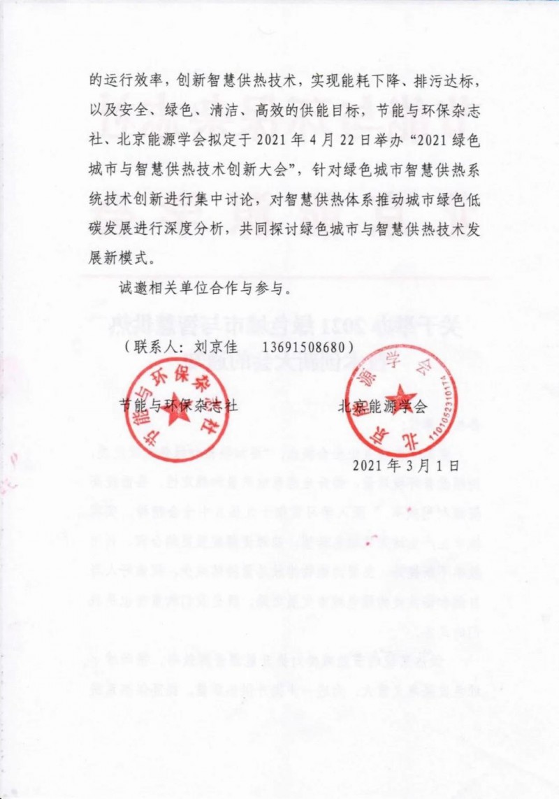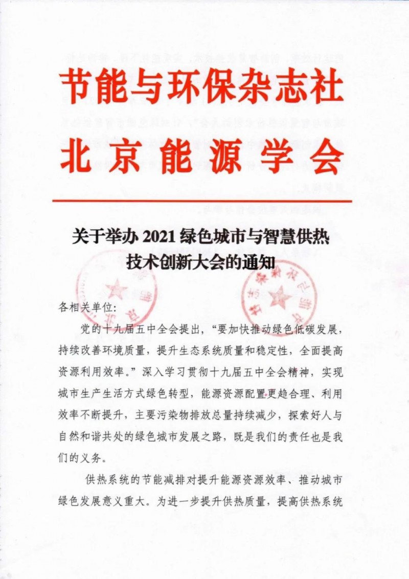 供熱系統(tǒng)的節(jié)能減排對提升能源資源效率、推動城市綠色發(fā)展意義重大。為進一步提升供熱質(zhì)量,提高供熱系統(tǒng)的運行效率,創(chuàng)新智慧供熱技術(shù),實現(xiàn)能耗下降、排污達(dá)標(biāo),以及安全、綠色、清潔、高效的供能目標(biāo),節(jié)能與環(huán)保雜志社、北京能源學(xué)會擬定于2021年4月22日舉辦“2021綠色城市與智慧供熱技術(shù)創(chuàng)新大會”,針對綠色城市智慧供熱系統(tǒng)技術(shù)創(chuàng)新進行集中討論,對智慧供熱體系推動城市綠色低碳發(fā)展進行深度分析,共同探討綠色城市與智慧供熱技術(shù)發(fā)展新模式。