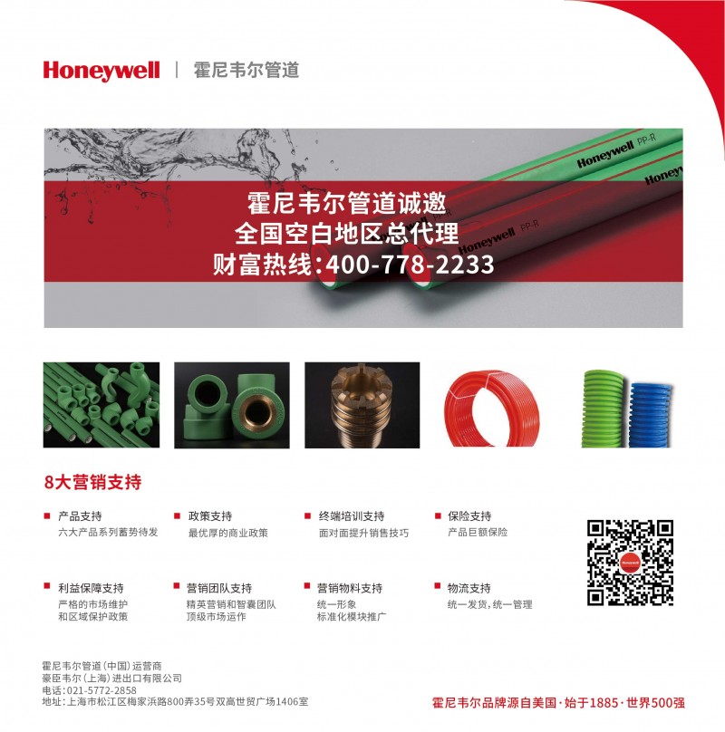 2017年7月16日,霍尼韋爾管道中國運營中心于上海成立,暨霍尼韋爾管道產(chǎn)品發(fā)布會。豪臣韋爾將借助美國霍尼韋爾國際公司擁有的世界級品牌影響力為中國管道用戶打造涵蓋新風(fēng)、給水、暖通、空調(diào)制冷、電工護套、同層排水等系列的高端管道產(chǎn)品。我們擁有納米抗菌發(fā)明專利技術(shù)的新型管材解決方案,為中國客戶提供更安全、更環(huán)保、更健康的建筑樓宇管道系統(tǒng)。