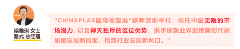 “CHINAPLAS 2021 國際橡塑展”以“新時代·新動力·永續(xù)創(chuàng)新”為展會主題,將啟用深圳國際會展中心300,000平方米的展場面積,攜手3,600+全球優(yōu)質(zhì)橡塑供應(yīng)商,以海量創(chuàng)新材料及機械科技巨獻,預(yù)計將吸引來自全國及海外不同橡塑應(yīng)用行業(yè)的專業(yè)觀眾。