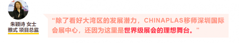朱穎詩談到,“展館于2019年9月啟用后,我們便著手進行實地考察及多方評估。其400,000平米的室內(nèi)展出空間,可緩解CHINAPLAS在廣州時展位面積不足的矛盾,符合展會的長遠發(fā)展。展館的19個展廳全屬無柱結(jié)構(gòu)且均設(shè)在一層,十分適合展出大型機械設(shè)備,亦方便觀眾參觀。展館先進的硬件及配套服務(wù),相信會給展商和觀眾帶來非常便捷和全新的參會體驗。”深圳國際會展中心可謂是粵港澳大灣區(qū)會展秀場的C位,其坐落于大灣區(qū)城市群的中心,緊鄰深圳寶安國際機場,同時便利連接香港國際機場,海陸空交通四通八達,與珠三角的工業(yè)發(fā)達城市緊密相連。