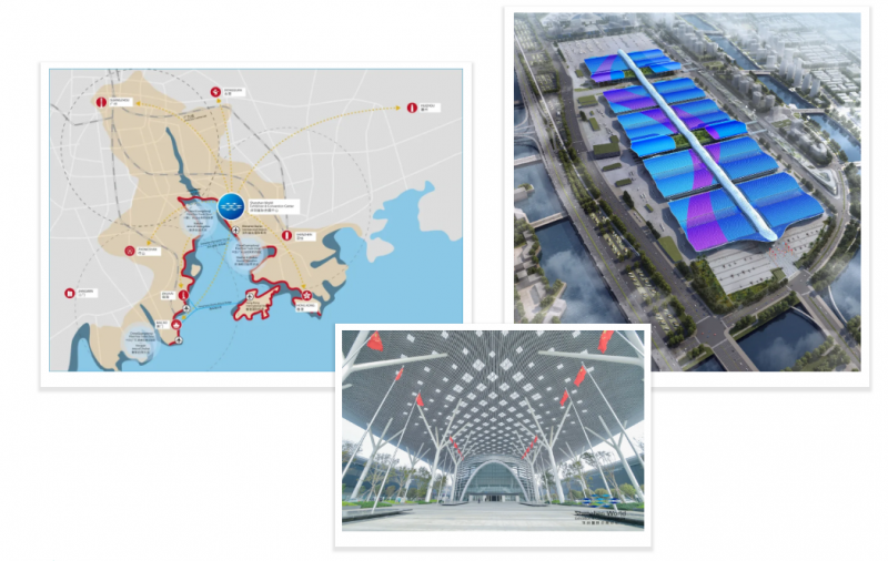 ▲深圳國際會展中心位于粵港澳大灣區(qū)灣頂、珠三角中心和廣東自貿(mào)區(qū)中心、廣深港核心發(fā)展走廊、東西向發(fā)展走廊的交匯處。區(qū)位優(yōu)勢突出。